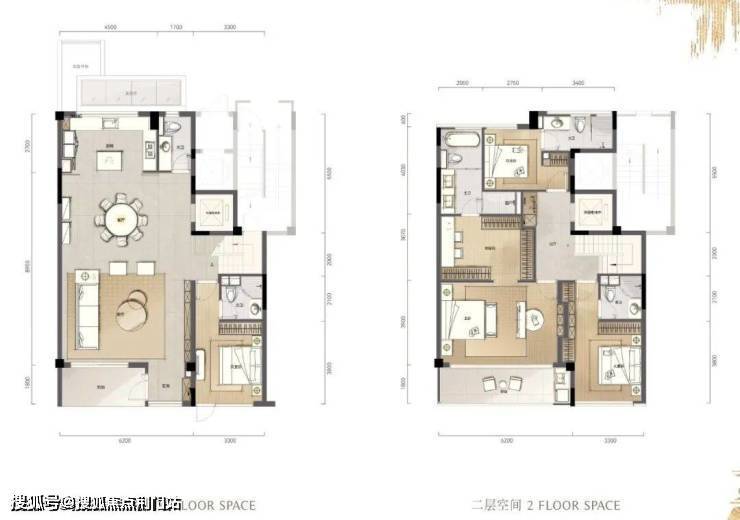 以B户型中间套为例,下叠约237㎡,上叠约273㎡,均为四房五卫的设计,而且每个卧室均为套房。