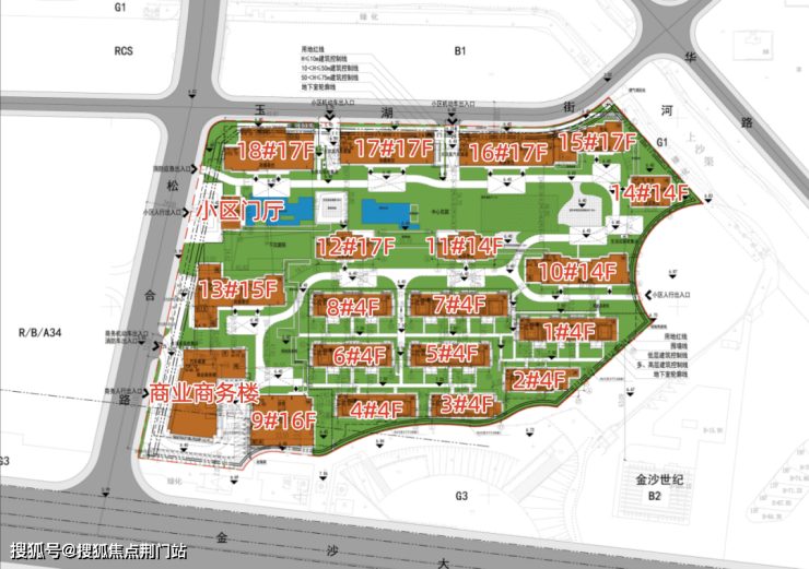根据规划来看, 项目拟建设18幢住宅:4F别墅、15-17F高层都有。