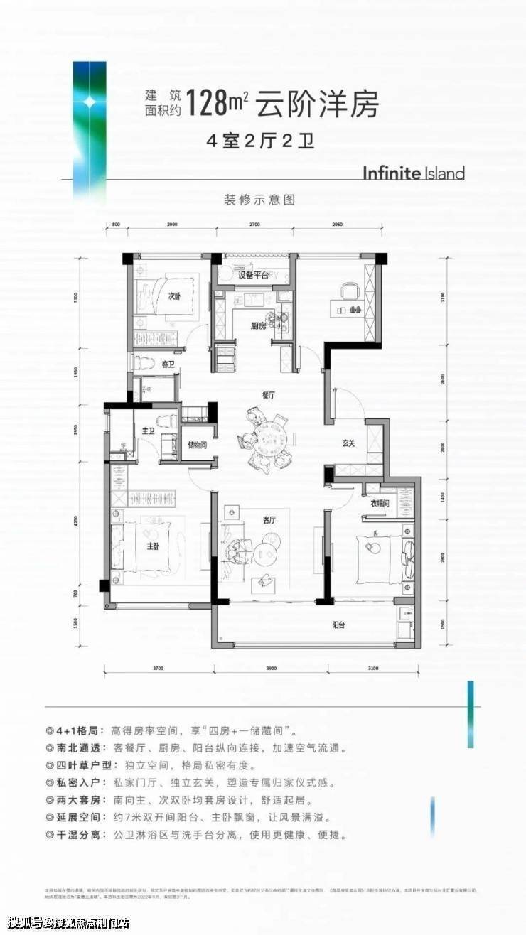预算更充裕一些的, 直接冲建面约128㎡“四叶草户型”。功能性和市面上约139㎡左右的高层相当,舒适度也非常高。