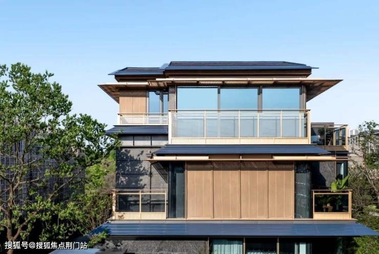 场地结合原始地形,因山就势,最终呈现出以“湖山设计空间”的创造。设计从宋代建筑中提取歇山顶样式,转译形成深远的挑檐,在视觉效果上给人以棱角分明、结构清晰之感,整体呈现一种清雅内敛的当代气质。融汇“合院形制+叠墅露台”等全新形态,全新打造轻宋式合院。