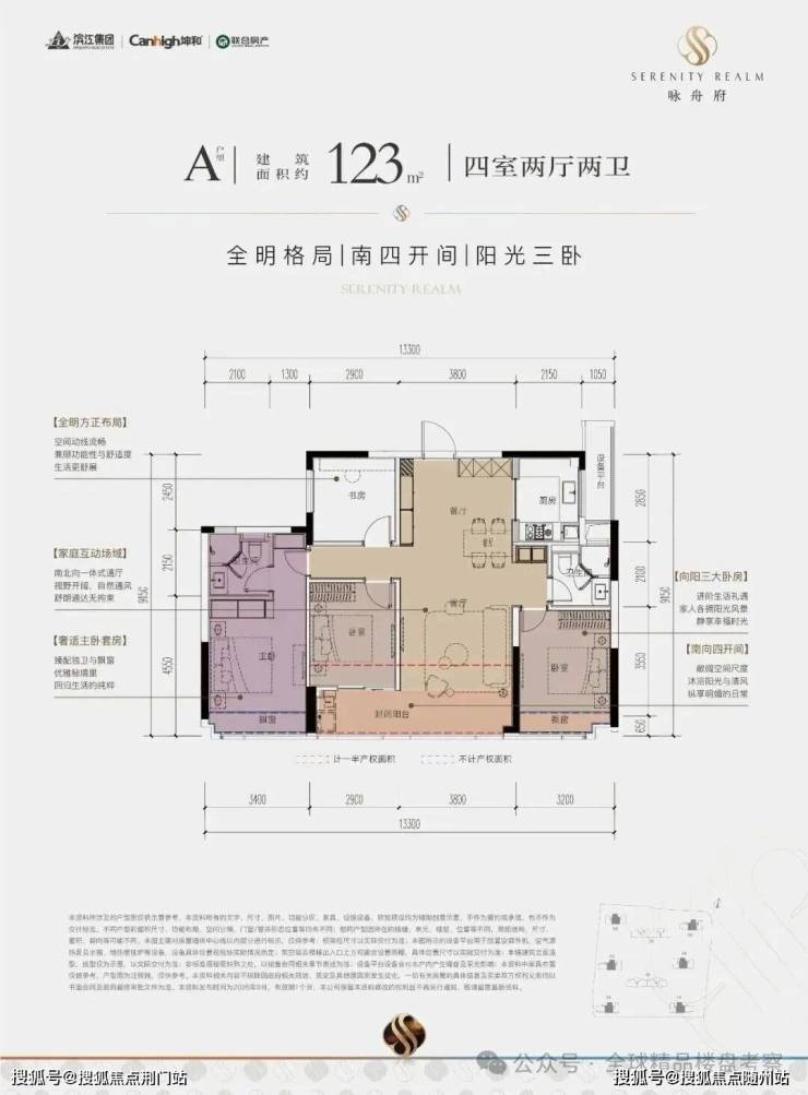 核心标签:南向四开间+阳光双套房+270°弧形飘窗
