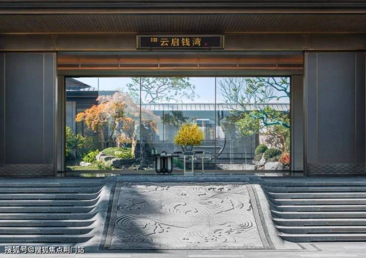 在云启钱湾,保留了重檐悬山顶门头,还有九级台阶以及水纹御道,大门两侧分立着威仪的铜狮,给足了归家的仪式感。