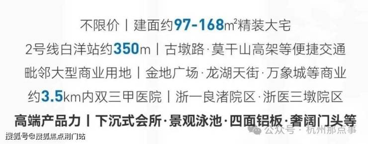 2号线白洋站约350m,一路之隔杭二中余杭分校、一路之隔规划地铁商业综合体。建面约96-168方精装美宅,均价仅2字头,赠送包阳台。实景示范区样板房已开放,即将首开。