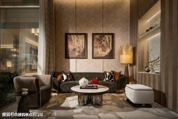 设计师巧妙提取良渚文化的线条语言,将那些镌刻在玉器上的古老符号与自然生长的图谱完美融合。水波纹琉璃壁灯将流动的液态美学凝固于金属支架之间,以光的韵律谱写现代隐奢。