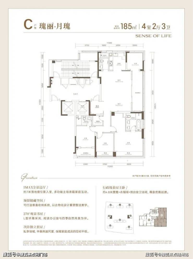 建面约185方户型,高品质的寰景奢宅: