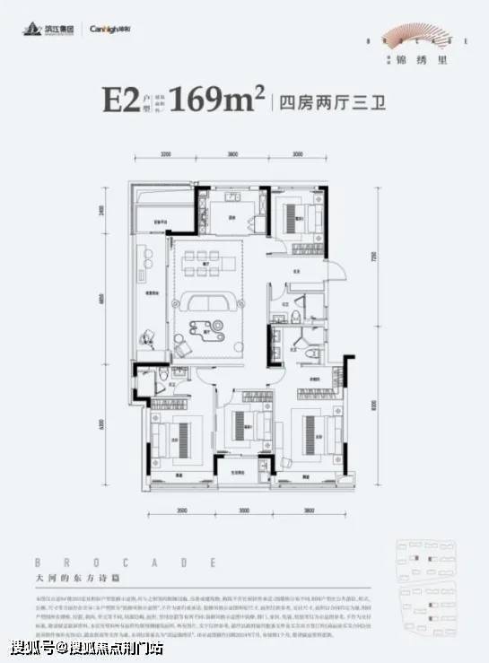 最后,建面 约169㎡的边套户型,以 宽敞的大方厅和双阳台设计,将生活空间与休闲功能巧妙分隔,提供了更开阔的居住体验。此外,入户玄关处设计合理,提供足够空间设置玄关柜,不仅满足日常生活需求,也保护了居住的私密性。