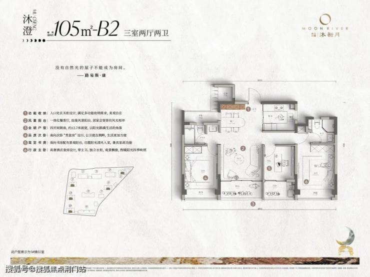 沐新月用外立面和园区告诉你“住在市中心可以很美”,用105㎡边套户型证明“小房子也有豪宅的范”。