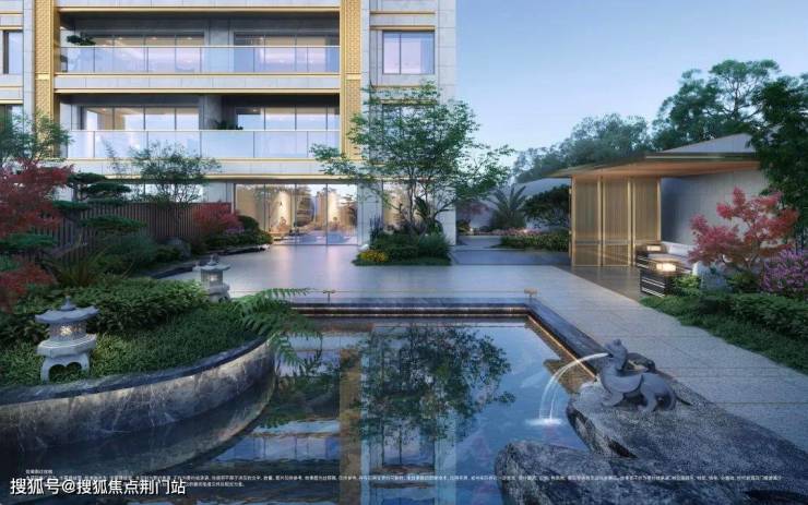 景观园林方面,其设计灵感来源于唐代大师李昭道《曲江图》,营造了七境归家礼序、五景人文意境。