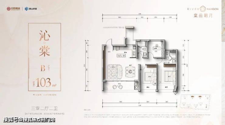 今年比较流行的大横厅户型,在棠前明月也能找到,且建面仅约103㎡。