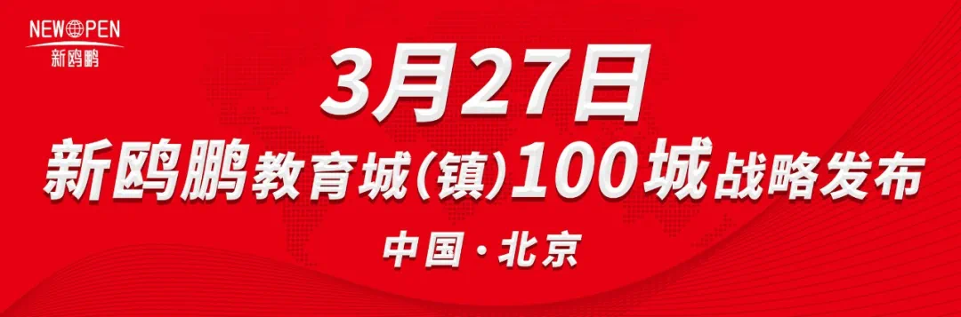 新鸥鹏教育城(镇)发展目标并未止于39城。3月27日,新鸥鹏将于北京发布教育城(镇)100城战略,以展示新鸥鹏教育城(镇)的全球发展规划,在“千亿鸥鹏”目标的指引下,新鸥鹏教育城(镇)100城发布会将释放什么重磅信息,值得期待。