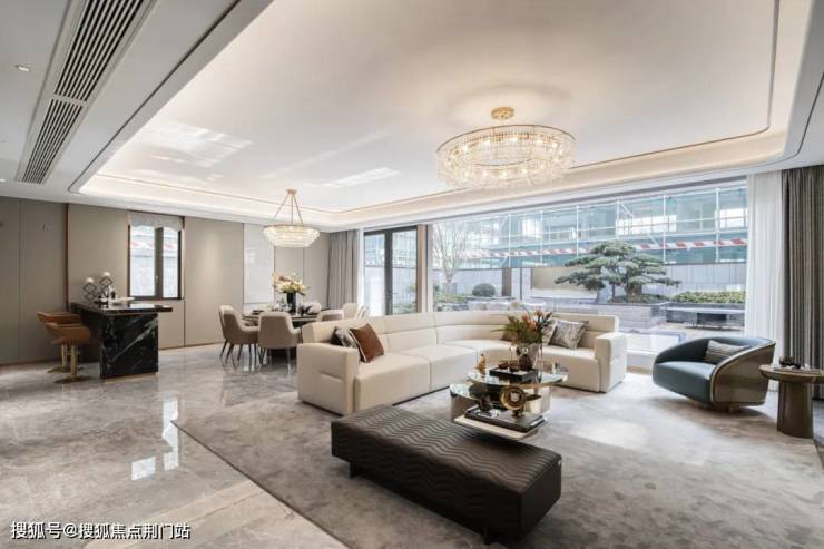 另外,一楼餐客横厅约3.4-3.5米朗阔层高,综合南向面宽约22.5米起,可抵“大平层尺度”的向阳面,搭配大面落地窗,舒适度提升不止一点半点。可以很舒服地在中厨外,再设一个功能百变的西厨岛台,宴请宾朋也很有排面。