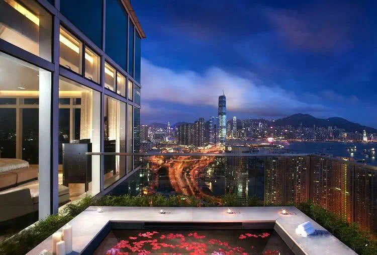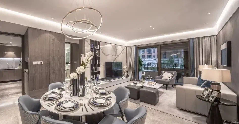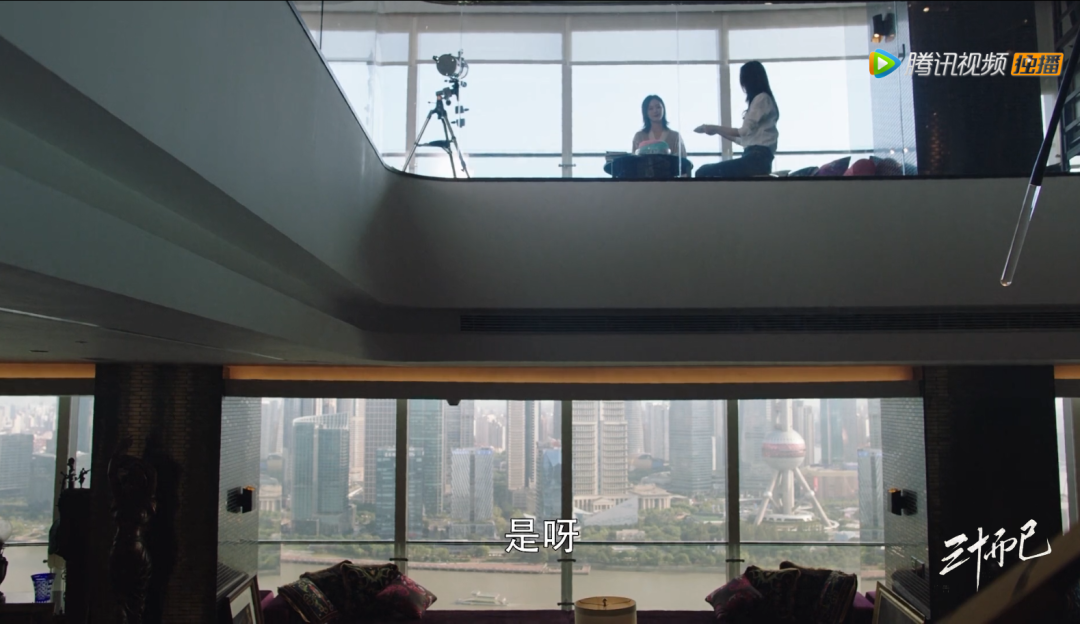剧中王太家的三层顶楼大复式,270°一线江景环绕,直面“三件套”,电梯也是特别专属的。这里的物业是CBRE(世邦魏理仕),拥有24小时酒店式物业管理服务。