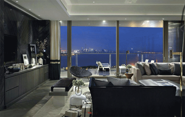 项目一共有108席,聘请6位知名设计师量身定做,370-1500㎡超大空间,每个房间都有超大阳台,360°采光不浪费一丝一毫江景。