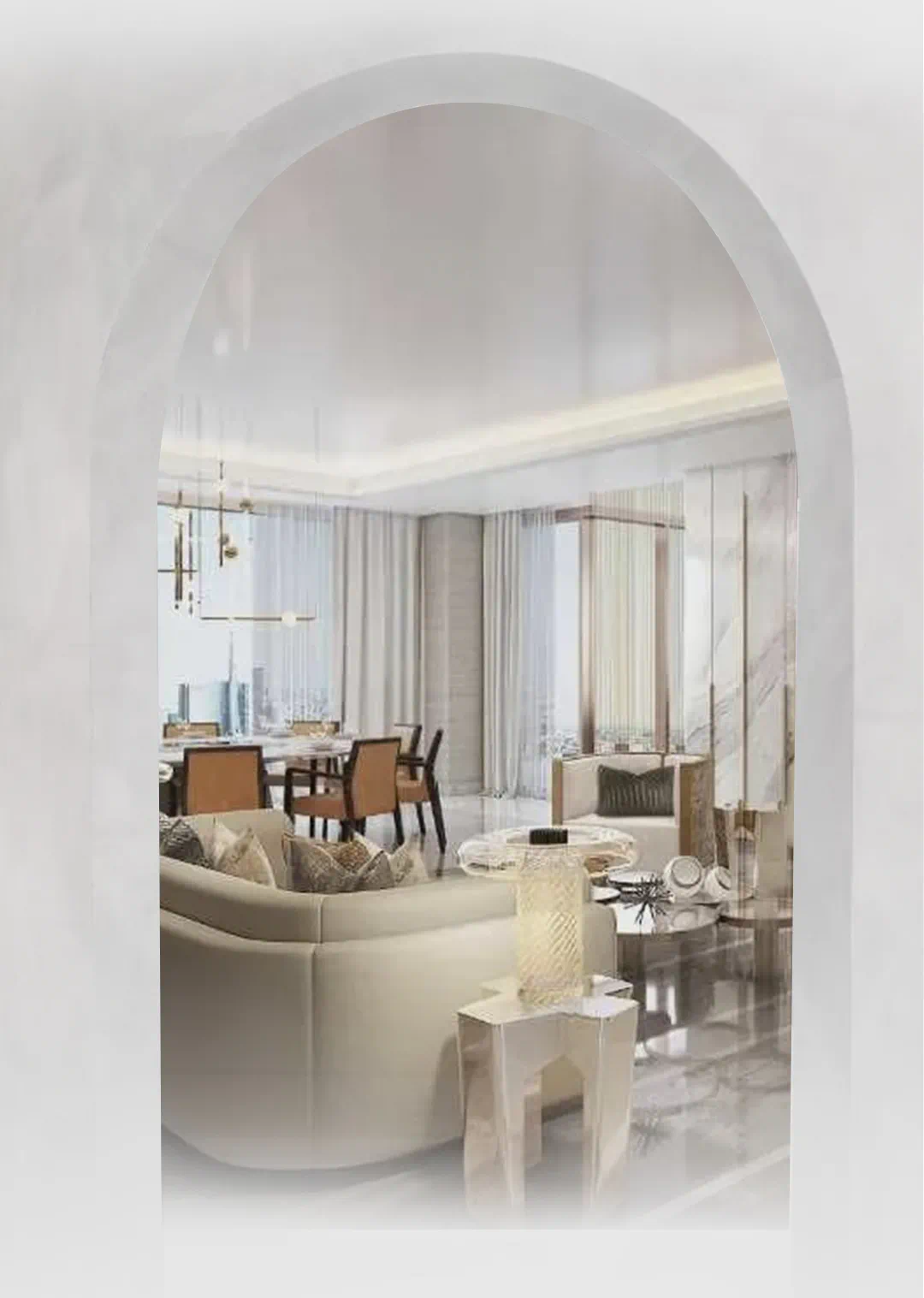 外立面设计为波浪式异型环廊,洁白优雅的造型极具现代建筑之美,同时极大保留了不同方向的观景需求,也更符合年轻新富豪们的审美。