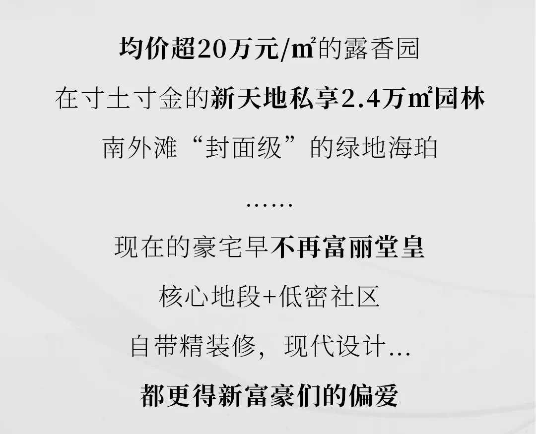 为了打动具有国际视野、前瞻力的高净值人群,以及越来越年轻化的新富豪们,核心地段+低密社区,时尚简洁的材质,简单大气,更具现代感的立面,不仅已成为国际豪宅的主流,也成为魔都豪宅的新趋势。
