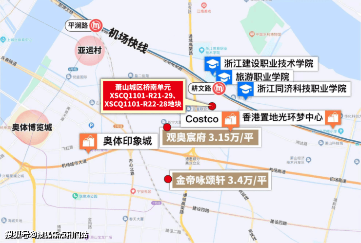 项目价值:距离地铁19号线(机场快线)耕文路站直线约280米,1站亚运村,2站江河汇。同时还有中国大陆第五家、浙江省首家Costco会员店步行可达,面积约98方起步,是普通人也能买的节奏。