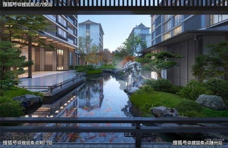 园林设计灵感来源于临平山上塘河,引山水入园,演绎宋式精工居所。整体遵循宋代江南水乡的古城肌理,打造“三进二庭五园”的山水轴布局,营造“两轴九景四时”的极致意境。