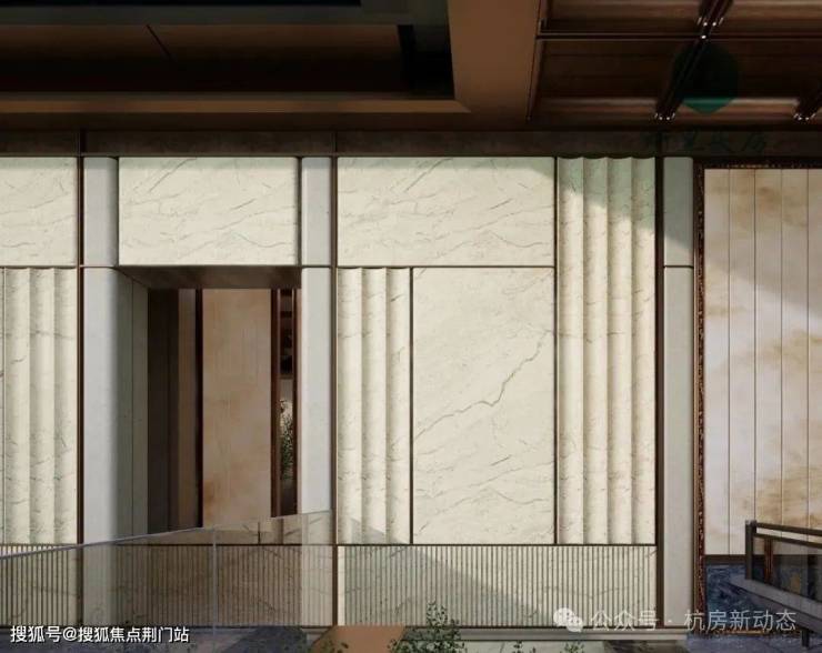 解构重檐、挂落、悬鱼等中国古代代表性建筑元素,并提取鸡血石、天目盏等吴越瑰宝之形意,以现代工艺技法予以转译重构,让东方美学与吴越文化的千年积淀,转化为可触摸的建筑美学。