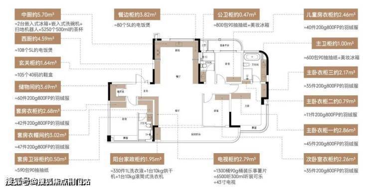 隐形收纳体系:从玄关到卧室的全屋嵌入式收纳,收纳总面积约42m³,让实用功能隐于美学表达之中,确保空间的整洁与奢阔感并存。