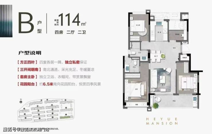 这套约114㎡户型还是标准的四叶草户型,4个房间互不干扰。南向还拥有约6.5米的超长阳台,可同时兼顾生活和休闲功能。
