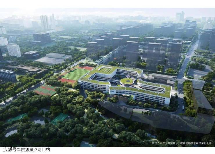 不止在南北两个区域,各放下了一座幼儿园,还在楼盘里面设置了一所九年一贯制公办学校,今年4月份已经跟杭二中白马湖教育集团,正式签约。
