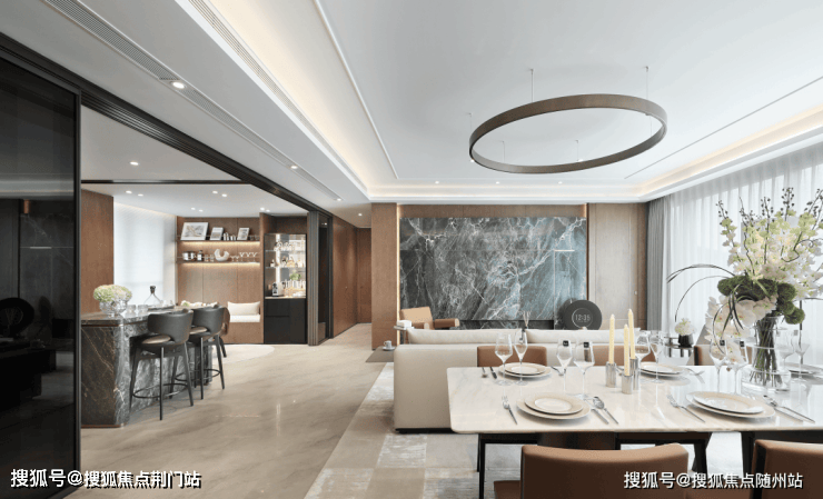 项目建筑设计邀请了九米建筑设计院量身定制,立面风格采用经典锦庐系公建化立面,四面铝板搭配大面积玻璃,封包阳台,整体精致通透,底层以浅色天然石材为主,额外做了圆弧细节,尽显优雅格调。