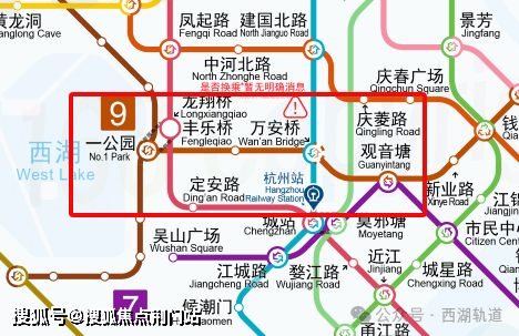 杭州地铁2035年规划中,9号线二期或将西延,增加2站,直达西湖边的一公园,有望于龙翔桥站实现换乘。