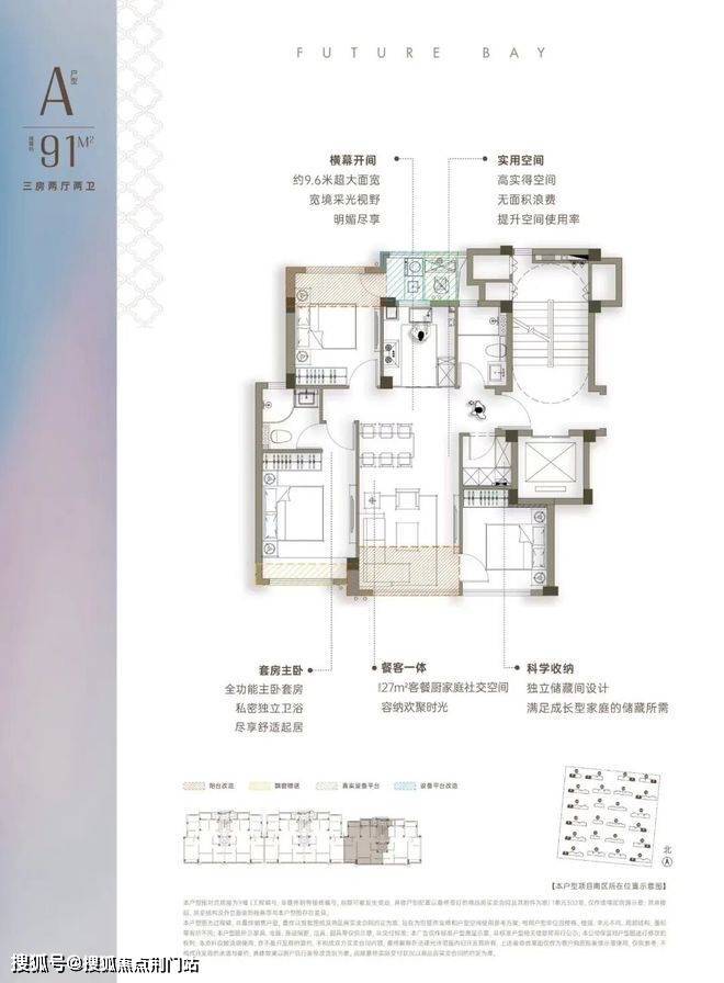 至于户型,小高层有建面约91-108-125-139-165方,5种不同面积段的设计。得房率最高达95%。