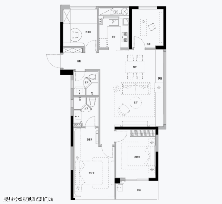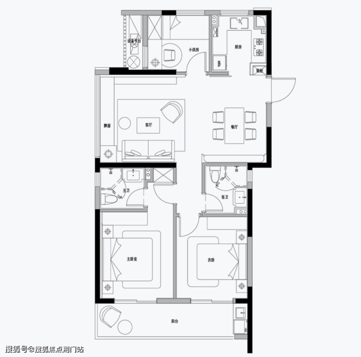 想买四房的话,门槛也不高,因为颐萃别院建面约111方就做到了四房两卫,还是当下很流行的大边厅设计,餐客厅都拥有敞亮的视野。