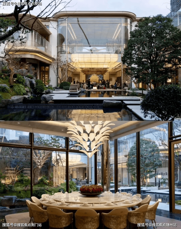 项目的核心亮点在于其“向下探索”的哲学。一个精心打造的下沉式庭院,以镜面水景和数棵百年珍稀古树为核心,成为静谧的社区绿洲与精神场所。这一设计巧妙地为约3200平方米的沉浸式地下会所引入了自然光与景观。下沉会所与酒店会所形成双会所格局,涵盖恒温泳池、私宴厅、健身房等全功能空间,宛如业主共享的“第二客厅”。社区内如同时尚展厅,甄选20种珍稀石材,从入口到室内细节,处处彰显材质之美。