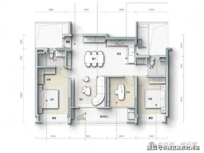 105㎡(A1户型):入门级刚需户型,独立玄关+800库收纳系统,S型墙体实现嵌入式冰箱,南向双卧带飘窗,主卧配独立卫浴与衣帽间,小空间兼顾功能与仪式感2。