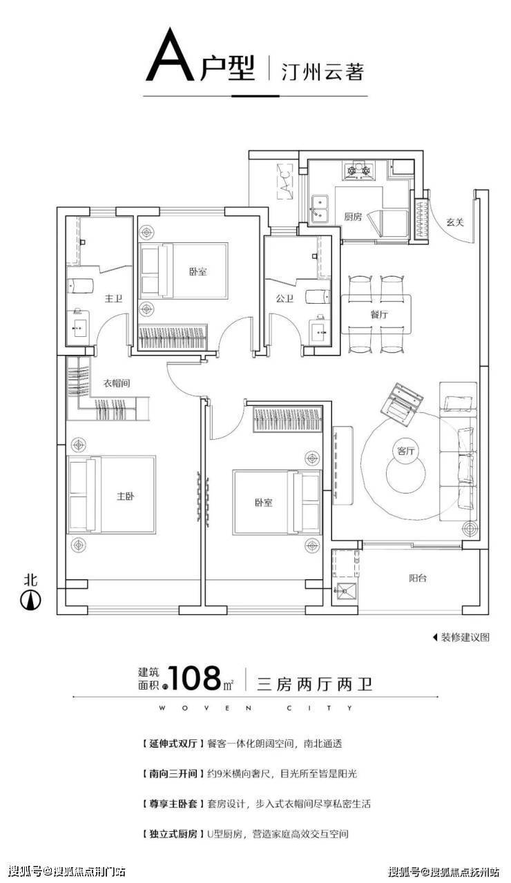 一、建面约108方三房两厅两卫中间套: