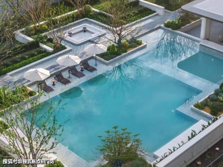 藏溪观景花园意在打造“林下主题社交空间”:以现代笔法演绎东方意境,丛生朴树构筑空间骨架,红梅与鸡爪槭点染四季,素墙山石间流淌着诗意栖居的雅致; 天青组团则主打度假式景观:营造约400㎡镜面戏水池,天然石材折射粼粼波光,铁冬青围合出度假式休闲空间,让日常与自然共生。在景观戏水池的打造上设计师以"流光溢彩"为灵感,打破传统景观边界,在亲民尺度中融入动态美学。晨起可赏树影婆娑,日暮可观孩童嬉戏,每一处实景都是对未来生活的郑重承诺,让湖居梦想触手可及。