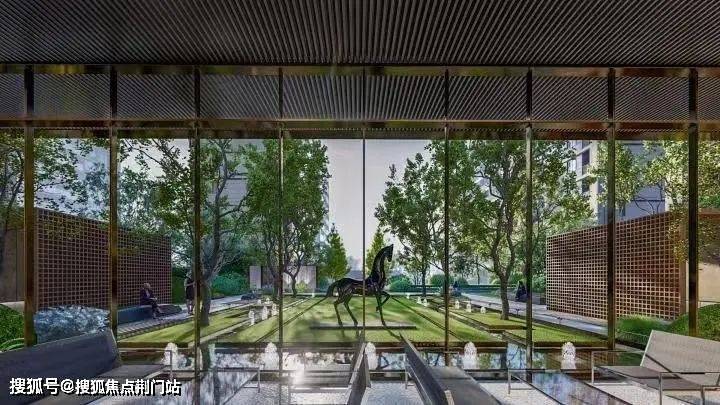 【 景观篇 】赞成•汀南学仕府容积率仅1.8,用78%的土地匠造一座沉浸式度假园林,约200米东西仪式性景观主轴与约150米南北功能性景观次轴交融,约450米森氧跑道环绕于前,3大组团花园隐逸其中,漫步景观轴线,庭院小品与绿植相辅相成赏心悦目,景墙相配、虚中有实形成对景。