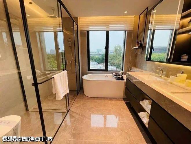迎的是185㎡,样板房的设计中,餐厨房、书房和客厅几乎都打通,空间十分开阔。主卫采光绝佳,设计了转角圆弧玻璃窗。