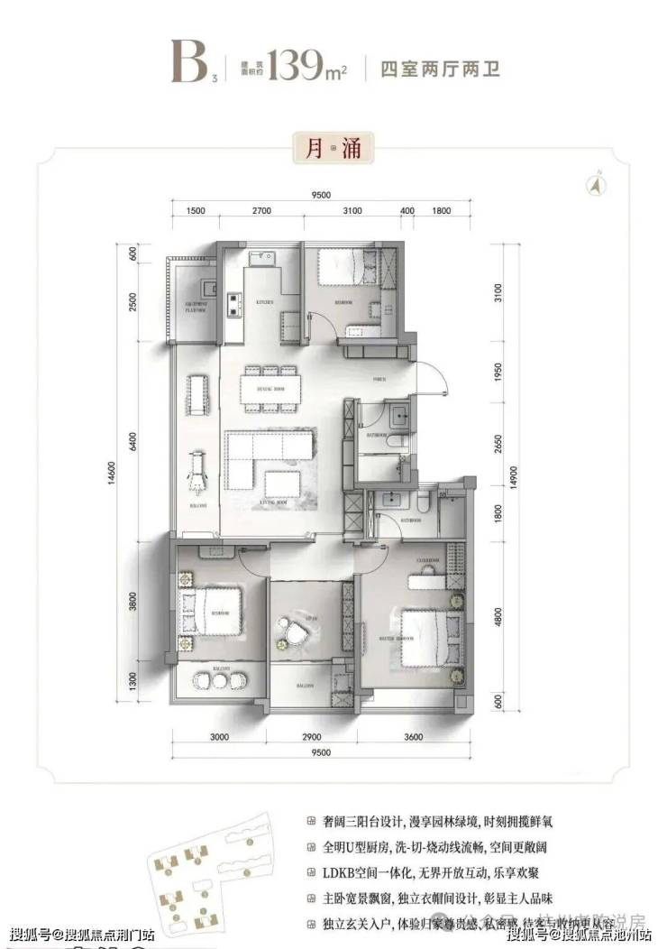 125㎡ 4室2厅2卫(中间套)四开间朝南设计,南向面宽拉满,采光通风效果俱佳;LDKB空间一体化布局,灵活适配二孩家庭日常居住需求;主卧套房设计,配备独立卫浴与专属衣橱,私密性十足;封闭式阳台可灵活改造,进一步提升空间利用率!