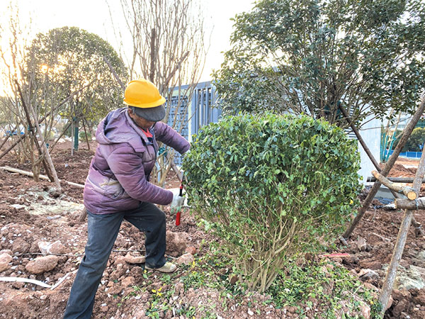施工场地内,可以看见增添了不少树木,洒水车正在浇水,一名工人忙着修剪绿植。该项目负责人说:“这里属人口密集区域,周边住户较多,建成后,居民可就近游玩、健身。”目前场内绿化部分已完成80%。接下来,将对广场地面进行铺装,完成广场升降电梯的安装及剩余绿化种植。“其他几处人防疏散通道均为楼梯,这是广场少有的一部电梯,直通地下停车场,可为行动不便的市民提供便利。”该项目负责人介绍。