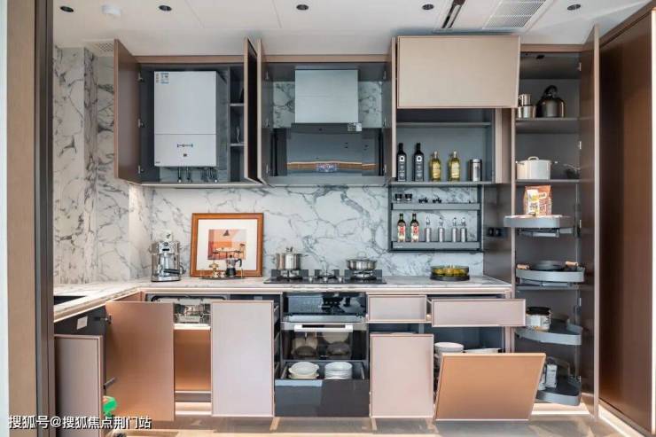 厨房选用更了解国人烹饪习惯的方太油烟机;橱柜配备天使拉篮、电动垂直升降调味篮和电动上翻门,每次取物都信手拈来;全屋标配美诺六件套(微烤一体机、单冷藏/单冷冻冰箱、洗碗机、洗烘套装)......