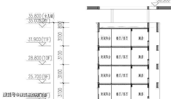 项目最底层及地铁双浦车辆段,上盖后首层为车库,层高约5.9米,架空层层高4米,房源层高3.1米。