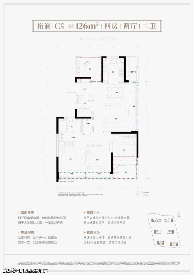 建面约126方户型:大边厅+南向的阳台,还有大套房,内含卫生间以及衣帽间,再加上独立的储藏室,收纳空间满分。