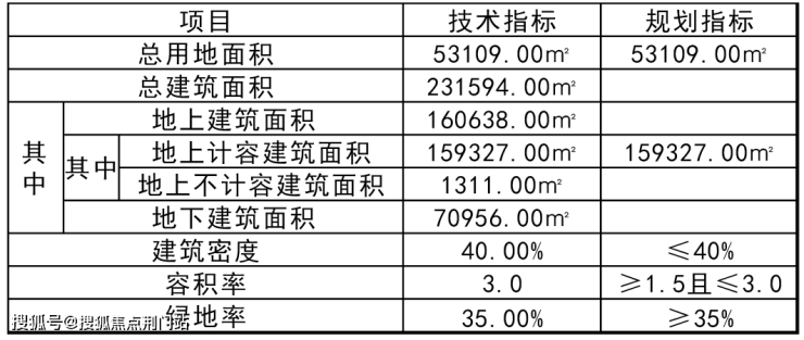 项目用地面积53109㎡,总建筑面积231594㎡,其中地上建筑面积160638㎡(含地上计容建筑面积159327㎡,地上不计容建筑面积1311㎡),地下建筑面积70956㎡。