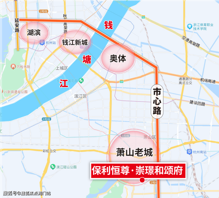 从钱江新城、奥体,再到萧山CBD,市心路不仅一脉贯通高能区,而且未来还将继续向南延伸,与杭州南的绍兴、诸暨连接,这就意味着市心路作为纵向的黄金中轴线,不仅为萧山区提供发展动能,更为融杭都市圈注入磅礴势能。