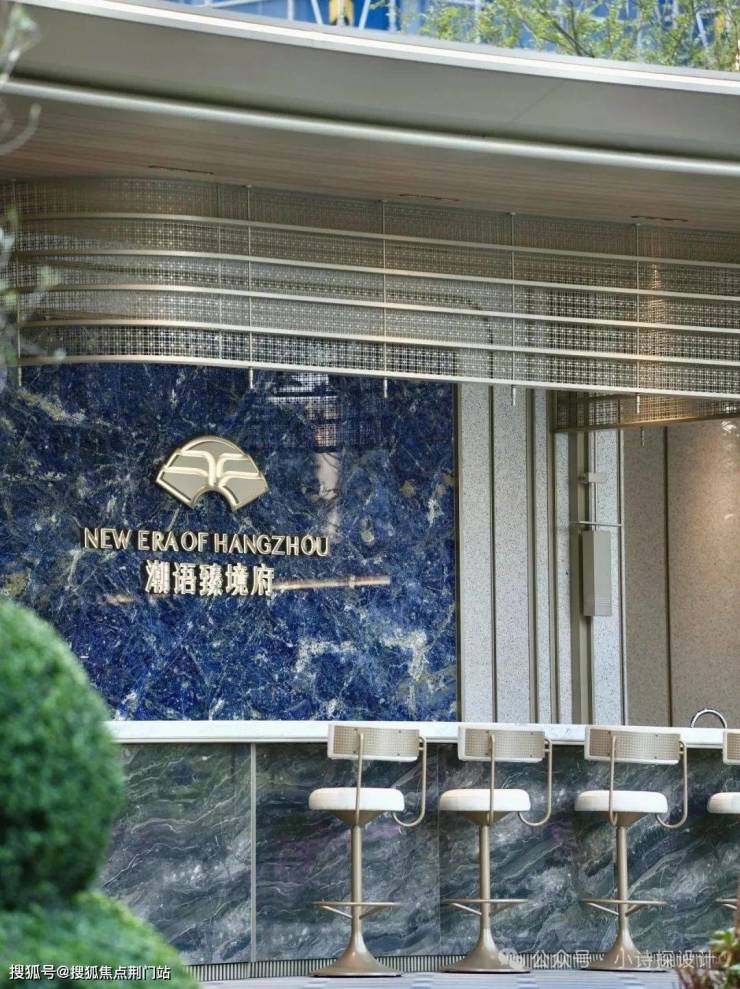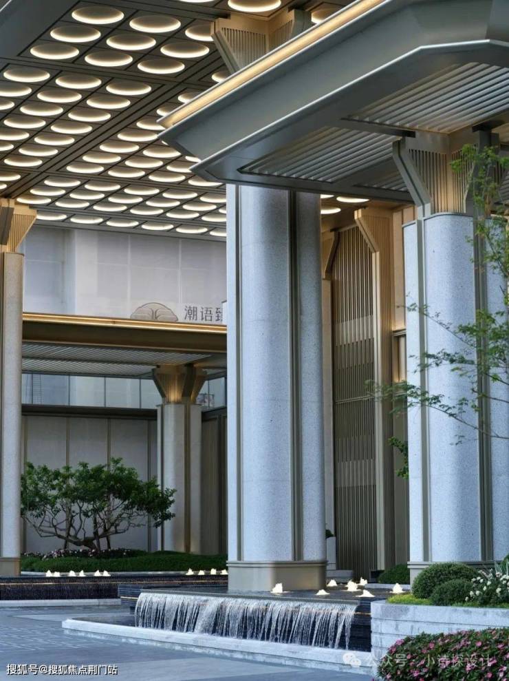建筑设计为绿城建筑设计,整体为现代简约风格,建筑立面的细节很多,和景观的咬合关系也不错~例如主入口柱子的圆弧石材,底部防止石材入水变色,柱础部分用了金属包边