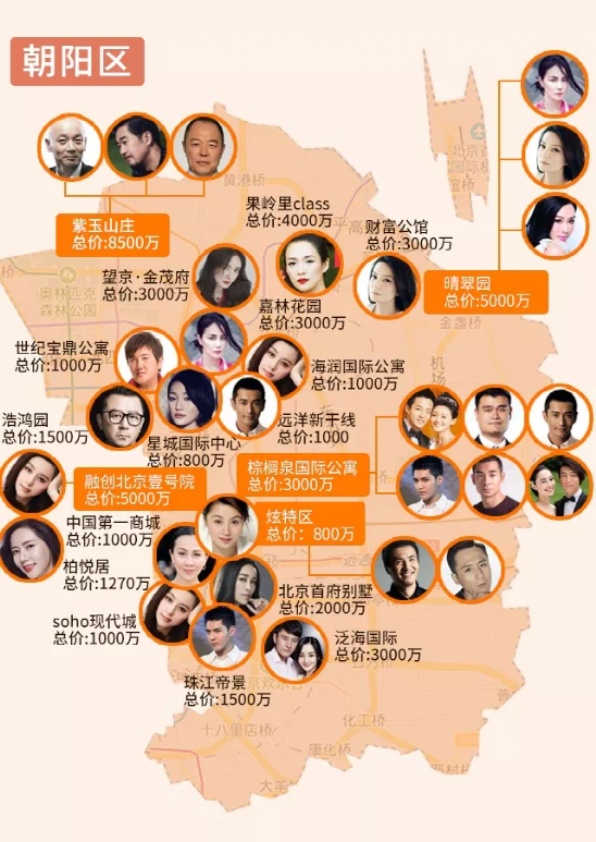 群众活跃成“梗”的朝阳区,明星扎堆居住,其中不乏在一个区里就买了三套的大神存在。