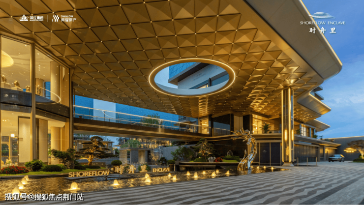 GAD大师张微以“科技+生态”为设计理念,将未来感弧线融入城市肌理:70米宽、9米高的鎏金天幕入口采用偏置大堂设计,顶部圆形镂空让光线穿透,将社区立体花园与城市界面自然衔接,形成“你站在桥上看风景”的互动美学。