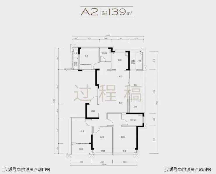 2)139方A1南厅户型,4房2厅2卫,得房率86%
