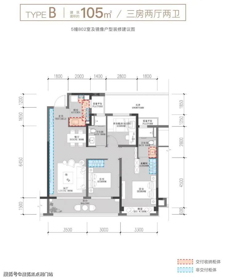 占地面积:33491㎡,共建造7幢25-26F高层建筑,总户数611户,面积105-128-142方都有,建面约105方,该户型为项目的三房起步户型,三房两厅两卫的设计。缺少入户玄关,隐私性弱;三面朝南,全明户型;竖厅设计+联通大阳台,主卧套房设计,带步入式衣帽间,带飘窗;