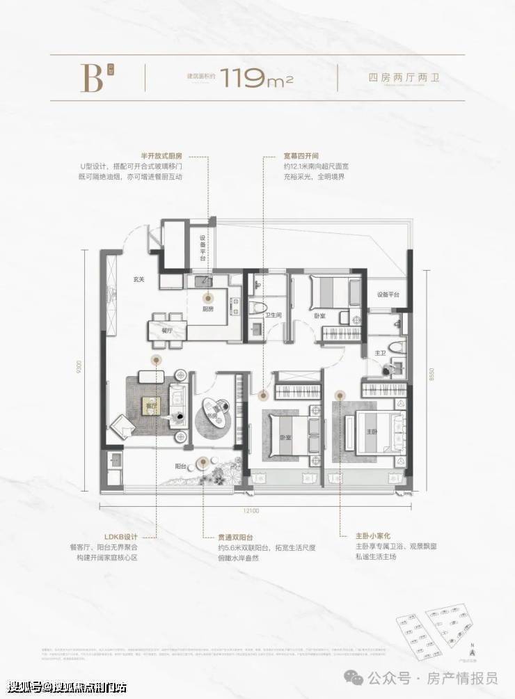 以建面约119㎡户型为例,
