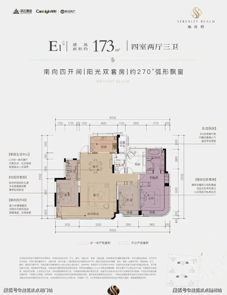 核心标签:南向四开间+阳光双套房+270°弧形飘窗