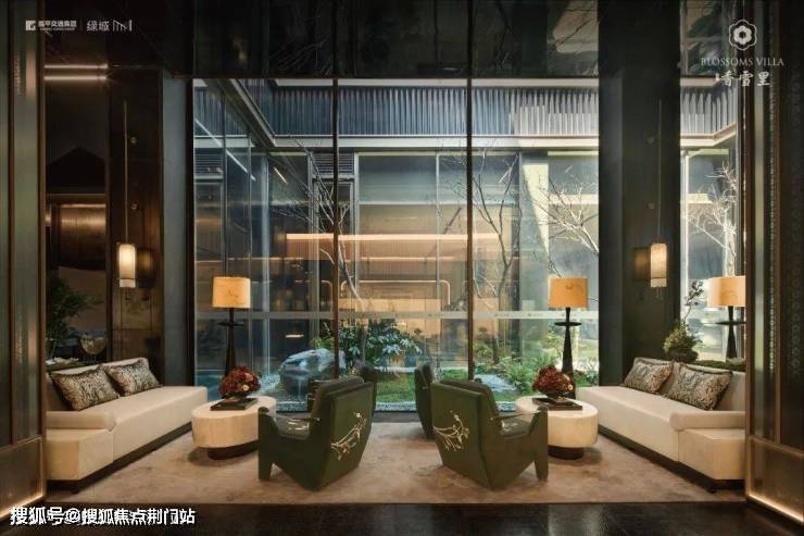 建筑立面:古今交融的诗意表达:外立面以香槟金铝板为基调,搭配蓝眼睛石材与玻璃幕墙,融合传统歇山重檐、纳福悬鱼等元素,既保留宋式建筑的对称美学,又赋予现代建筑的轻盈通透。合院组团采用三面庭院设计,L型景观面与环绕式檐廊,将超山梅影、丁山湖光引入每一扇窗景!
